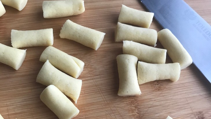 Riprendere l’impasto e dividerlo. Formare dei cordoni di circa un dito di diametro (8/10 mm).