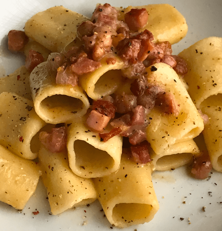 I paccheri sono un tipo di pasta di farina di grano duro, tipici della cucina napoletana e campana. La pasta di grano duro non ha aggiunte di niente se non di acqua e, per chi lo ritiene, un po’ di sale.