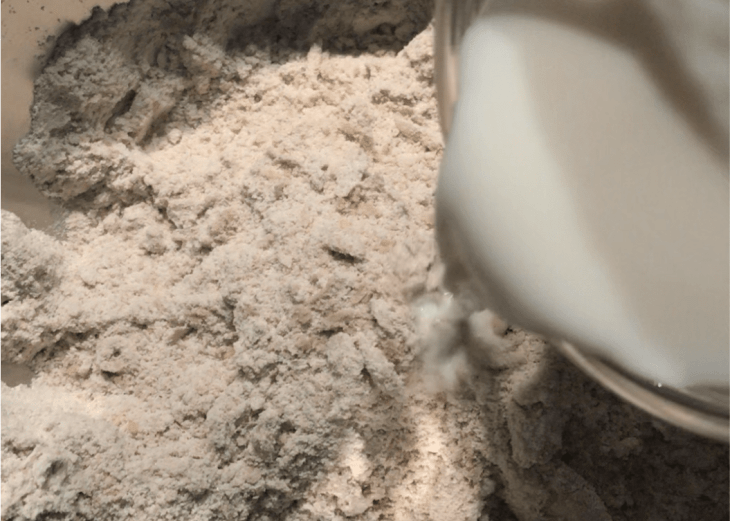 Lavorare velocemente per inglobare tutti gli ingredienti e far assorbire il latte.