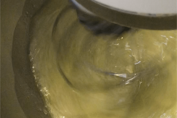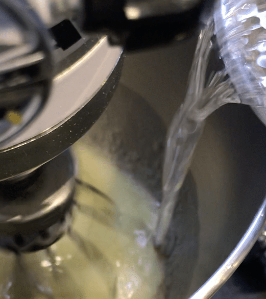 Raggiunta la temperatura di 121°C versarne metà nella planetaria in movimento, aumentare la velocità progressivamente fino ad arrivare al massimo e versare a filo il resto dello sciroppo.