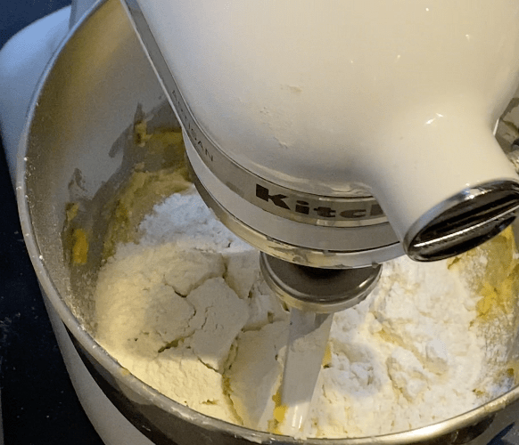 Facciamo attenzione che il tuorlo sia ben inserito nel precedente impasto prima di aggiungere la farina in modo che la farina che aggiungeremo non venga in contatto con i liquidi.